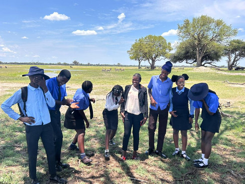 On 24 November 2025, we welcomed 32 students - eight from Ngamo Primary School, 8 from Ngamo Secondary School, 8 from Ziga Primary School and 8 from Mlevu Primary School. They heard from a carpenter, a nurse, a mechanic, a chef, a plumber, a manager, a guide, a lodge room hand and scouts (both Cobras and Cheetahs!). They enjoyed lunch at the lodge and a game drive, as well as some time with the community rhinos. The idea was to inspire and get them excited about their futures and encourage them to work hard in school.